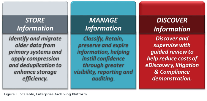Veritas archiving solutions allow organizations like yours to intelligently retain, search, and discover information and improve how you manage your email and other critical business information sources. With Veritas, you have the flexibility to easily set up, access, and manage archived information by deploying Veritas Enterprise Vault™ on-premise, or subscribing to Veritas Enterprise Vault.cloud™,a cloud-based service. Enterprise Vault and Enterprise Vault.cloud have the ability to quickly ingest and index terabytes of legacy data into a centralized archive. Each can also scale to support large data volumes (both solutions are successfully deployed at organizations with over 100,000 seats) to help you better manage the rapid growth of information