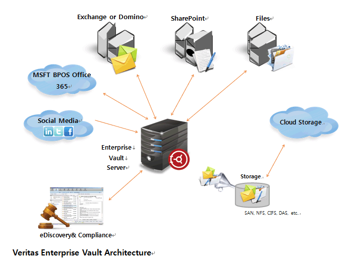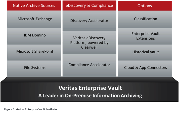 - Enterprise Vault - The industry’s most powerful and flexible, on-premise enterprise archiving solution offers customers a central archive platform to optimize storage, enable retention and defensible deletion, and improve search and eDiscovery needs across Exchange and SharePoint, Domino, file servers, and additional sources.